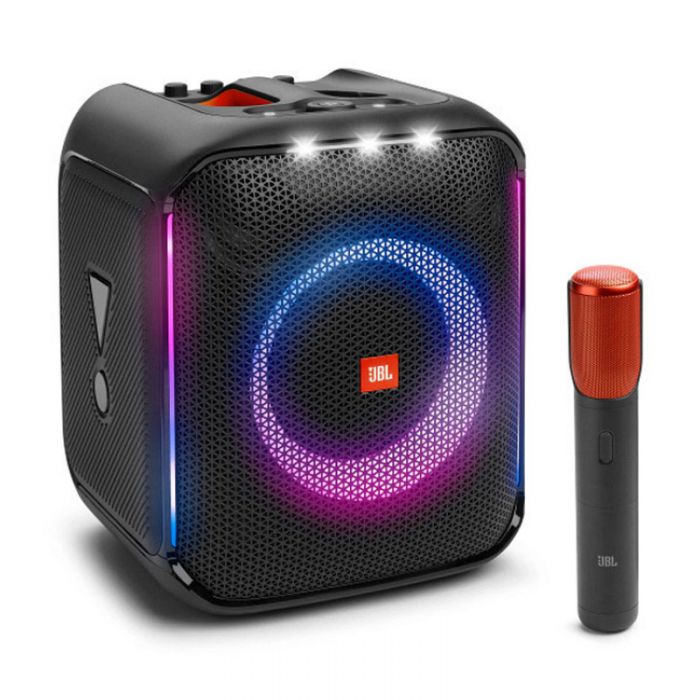 Haut Parleur Portable JBL PartyBox Encore - Connectivité Sans Fil: Bluetooth 5.1 - Puissance de sortie: 100W - Temps de charge de la batterie: 3.5 heures - Autonomie de lecture de musique: jusqu’à 10 heures - Réponse en fréquence: 50Hz - 20kHz @-6dB - Alimentation: 100 à 240 V – 50/60 Hz - Jeu de lumières synchronisé - Conception résistante IPX4 - Dimensions: 27,6 x 32,7 x 29,3 cm- Poids: 6.3 kg - Couleur: Noir - Garantie: 1 an
