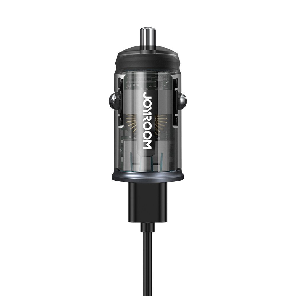 Joyroom mini double port USB Type C / USB 20 W 3 A chargeur de voiture intelligent Power Delivery Quick Charge 3.0 AFC SCP (C-A43) Il est conseillé d’avoir ce chargeur lors de tout déplacement. Il vous permettra de charger la batterie de deux appareils électroniques à la fois et vous pourrez utiliser les ports USB et USB Type C. La recharge est totalement sécurisée grâce à la puce qui gère la distribution de l’énergie électrique, et au système intelligent intégré qui protège contre les courts-circuits et les surchauffes. Ce produit compact et pratique vous aidera à économiser de l’espace et est également attrayant. Un boîtier transparent attirera sûrement tout amateur de technologie.