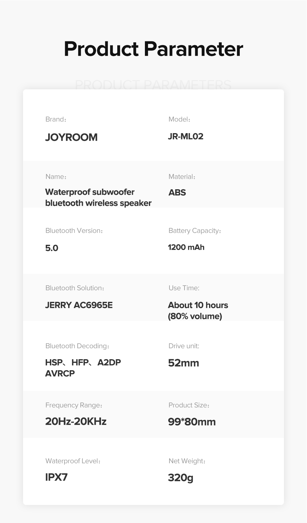 JR-ML02 IPX7 Waterproof Bluetooth Speaker