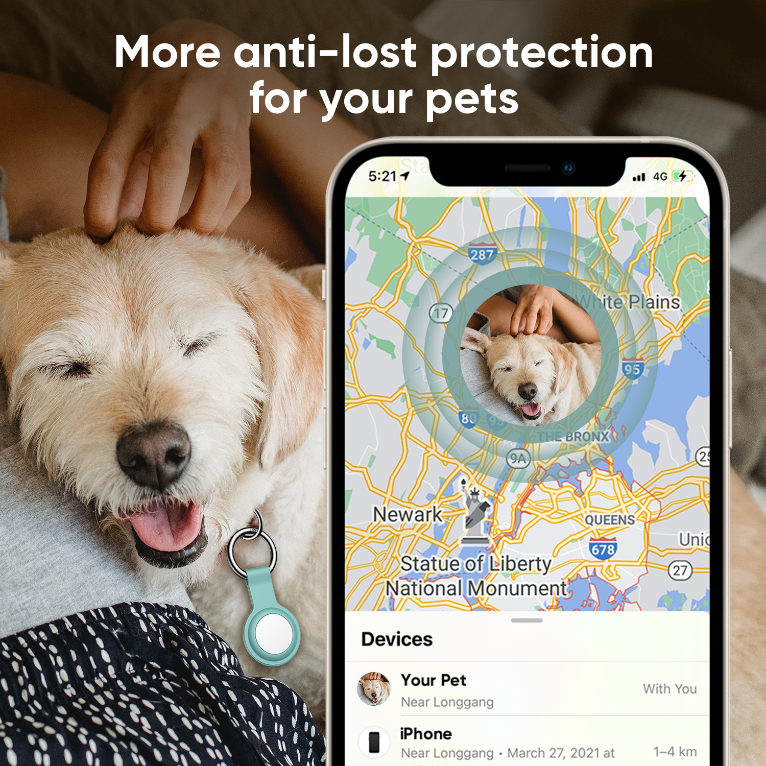 Silicone porte clé pour airtag bleu